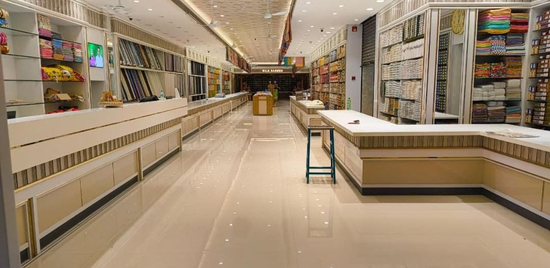 a beautifully designed textile store that blends elegance with functionality. From the soft ambient lighting to the carefully curated displays, every detail was crafted to highlight the richness and textures of the fabrics. The space balances modern sophistication with a warm, inviting atmosphere, making it a perfect showcase for timeless textiles.