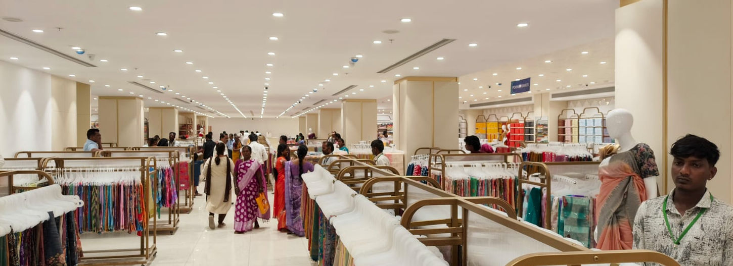 Our practice demonstrates a nuanced understanding of commercial interior design where cultural authenticity meets contemporary retail standards. This textile showroom reveals our capability to synthesize traditional Indian design vocabulary with modern spatial efficiency.